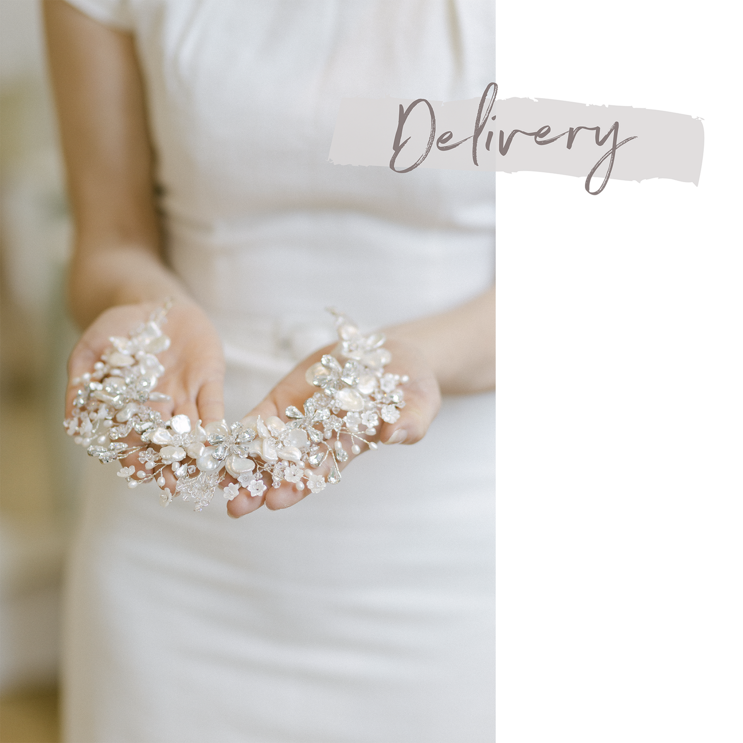 Rush orders are available when required. A delivery date will be decided together at the point of ordering, and for your accessories to arrive in plenty of time for your hair trials, or final dress fittings.