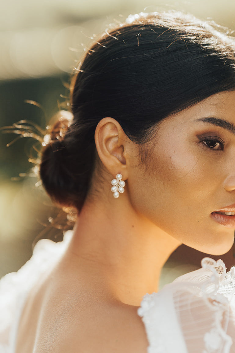 A detachable leaflet of freshwater pearls sits beneath a pearl stud earring, an elegant accessory which is perfect for an array of occasions which can be worn again and again with two looks in one. Also available in Gold.