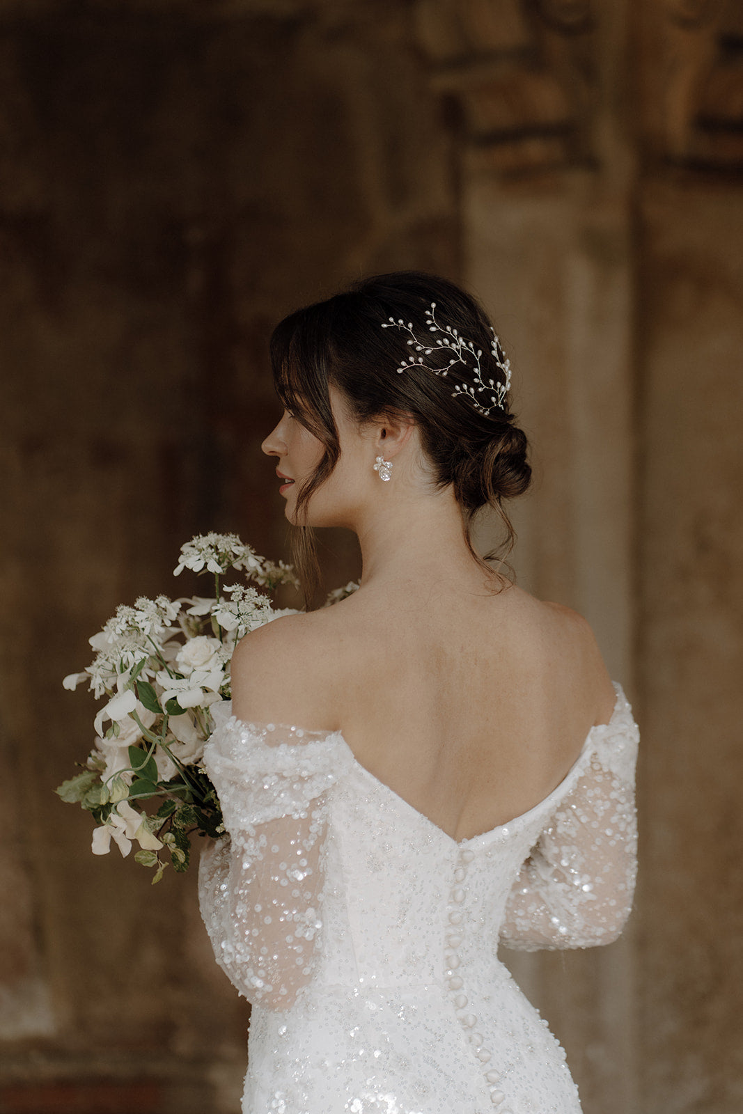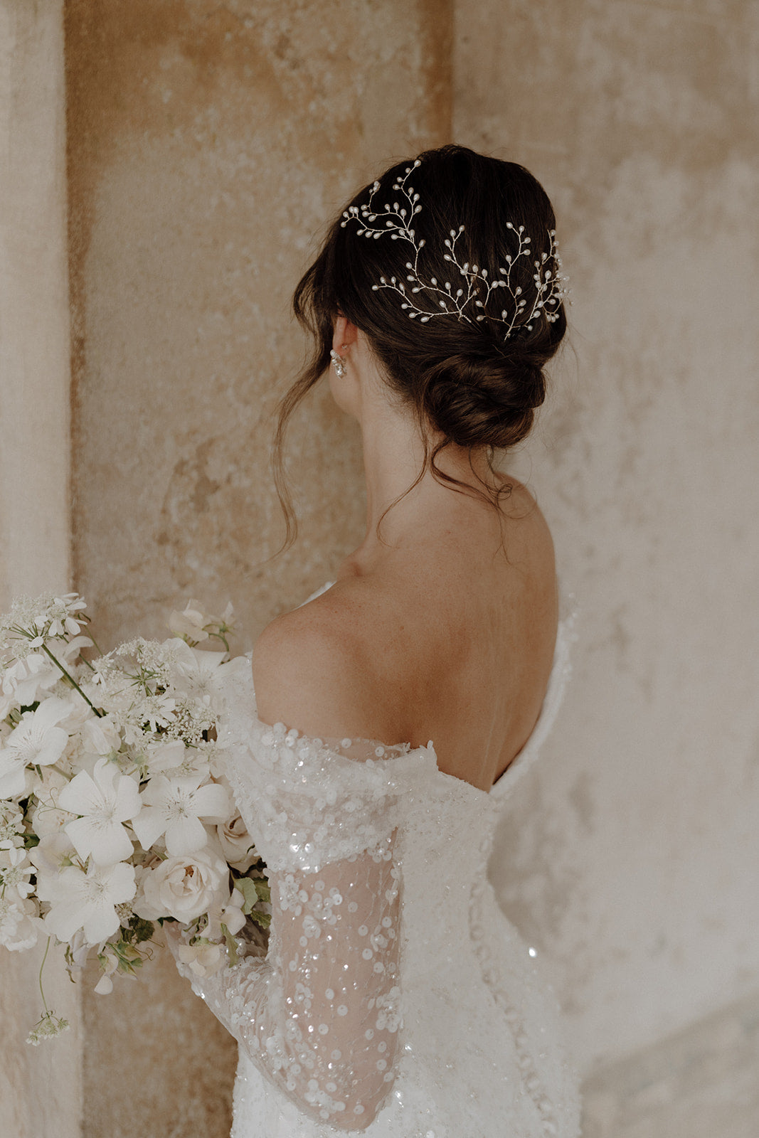 Delicate pearl tendrils create the Lily Hairpins. Cluster these pretty hairpins together to wear in any hair style. A set of three works perfectly above a veil, or more for a larger statement display.