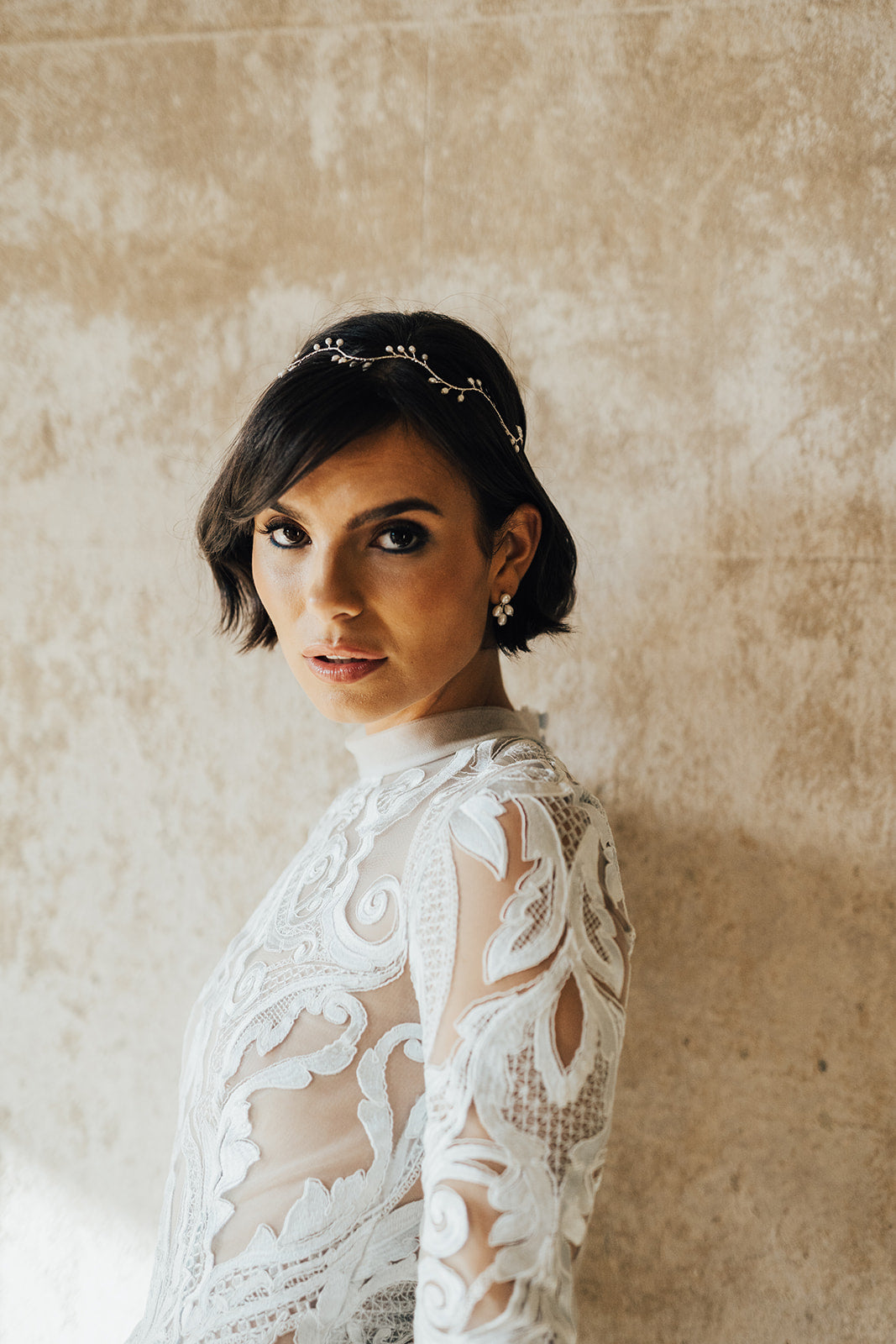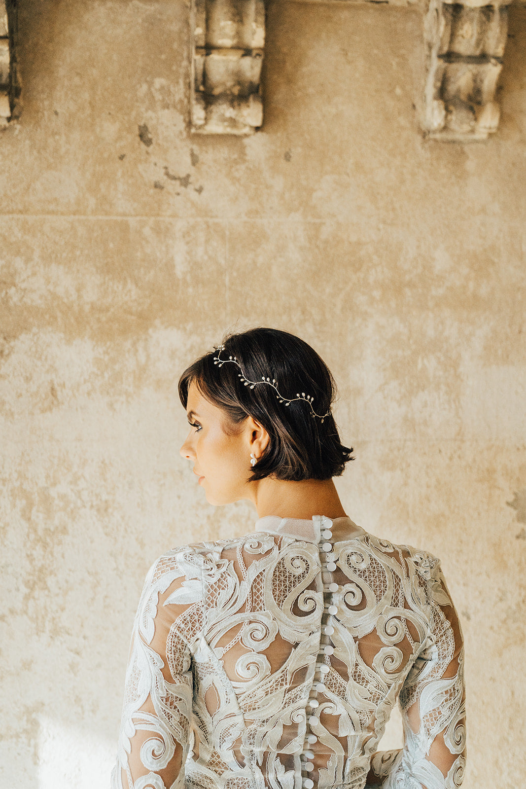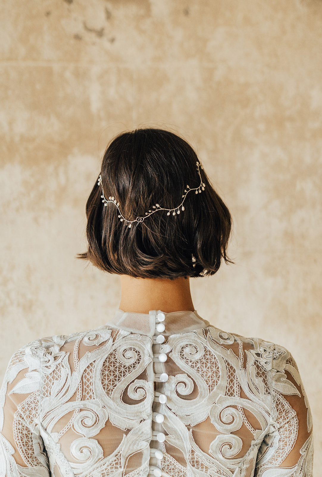 Delicate hairvine of pearls details. Ideal for styling in multiple ways including across the top of the head as a delicate circlet, draping across the forehead, weaving into a plait and wrapping around a soft bun.
