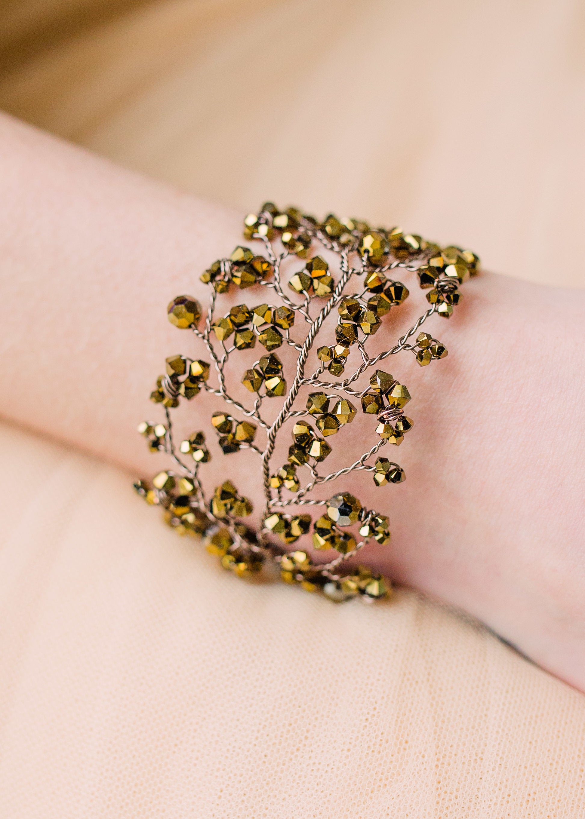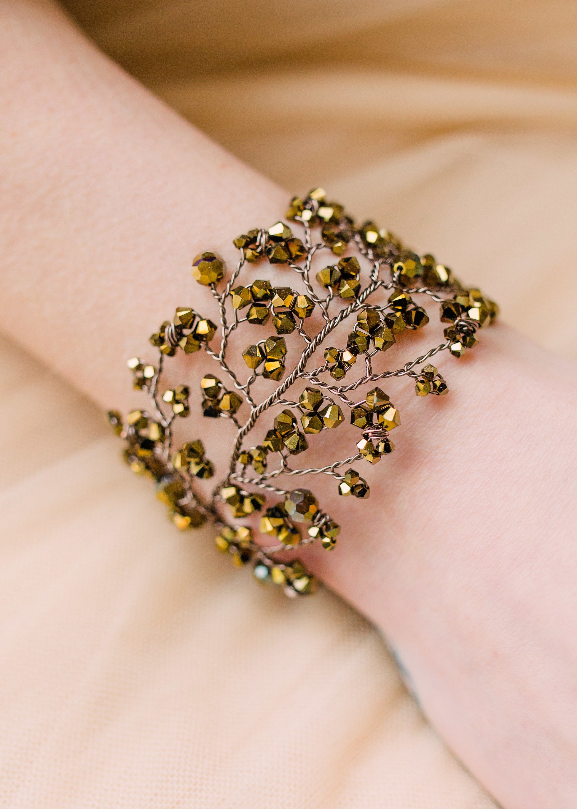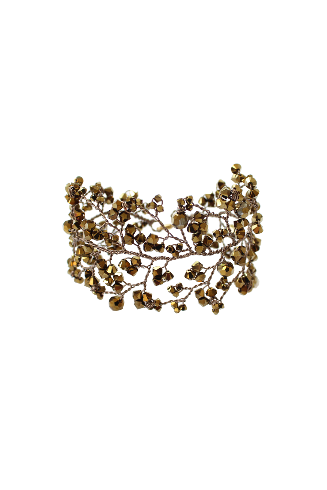 Dark Gold Swarovski crystals are the showcase of this gorgeous cuff bracelet made in organic wired vines with a lobster clasp fastening for easy wear.